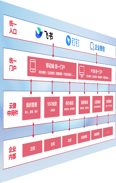 对协作平台提供支持服务,,,支持企业应用与协作平台对接,,,,包含组织同步、、、、消息集成、、、、待办集成等。。。。支持目前主流的协作平台:钉钉、、、、企微和飞书。。。